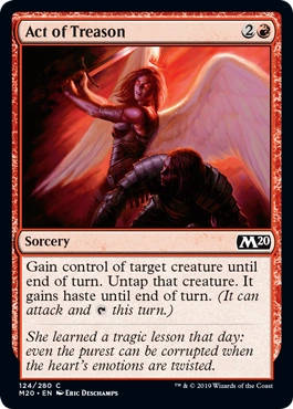 | 2019-07-12 | Act of Treason can target any creature, even one that’s untapped or one you already control. |