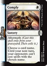 Comply Sorcery Aftermath (Cast this spell only from your graveyard. Then exile it.) Choose a card name. Until your next turn, your opponents can't cast spells with the chosen name. |
